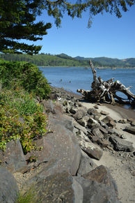 SW Fleet Ave ends at the embankment of the Siletz Bay along the southern edge of the Cutler City District. This beach access provides views of the Siletz Bay and Salishan Spit.